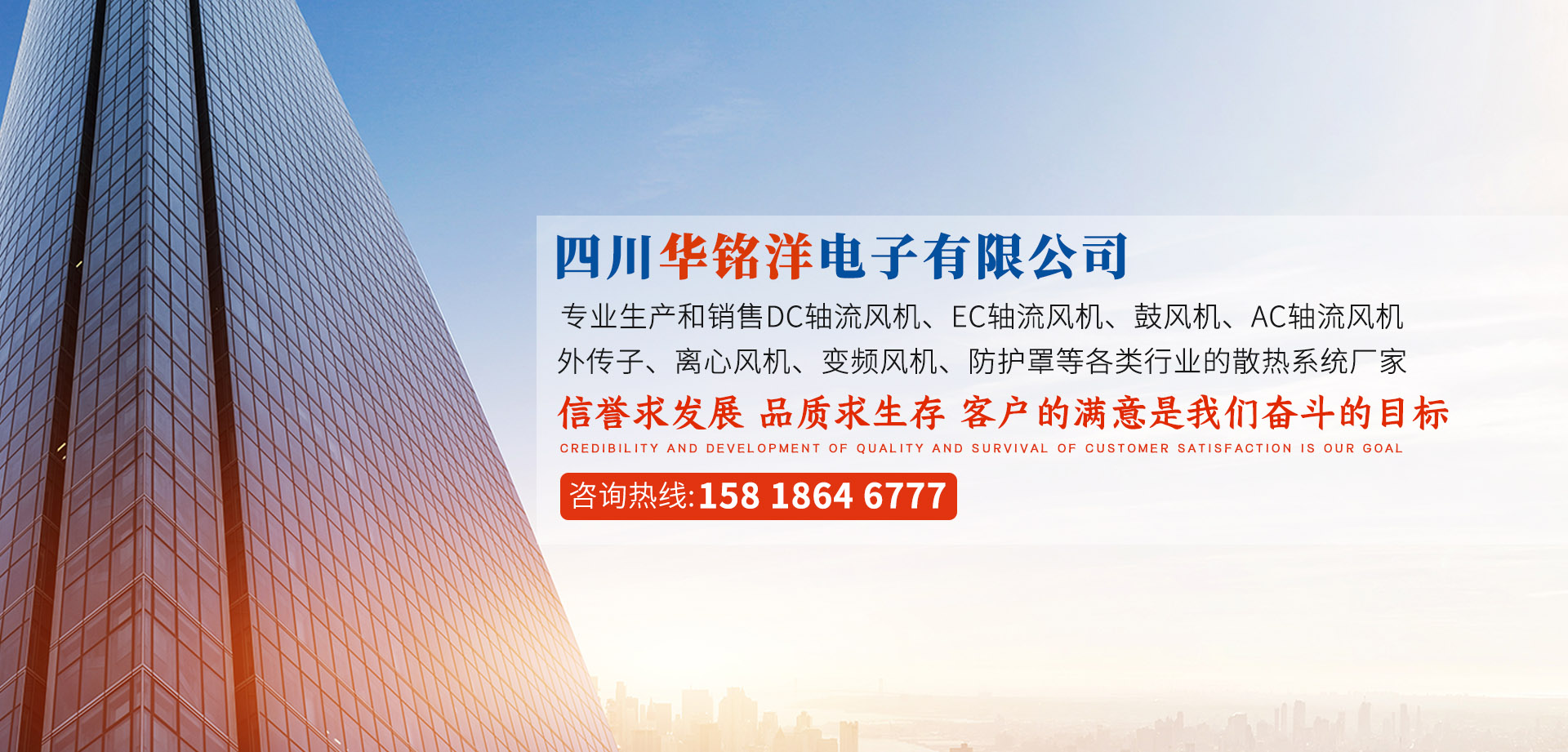 四川華銘洋電子有限公司是一家專業生產和銷售DC軸流風機、EC軸流風機、鼓風機、AC軸流風機、外傳子、離心風機、變頻風機、防護罩等各類行業的散熱系統廠家。 我公司司產品廣泛應用于:IP領域、運動器材、焊接、電源系統、儀器儀表、機械、機柜、機箱、電源、電器、通信設備、計算機、自動控制、通風散熱系統等各類行業的散熱系統廠家華銘洋公司全方位提供各行各業設備或系統散熱方案,解決設備或系統散熱問題。在產...